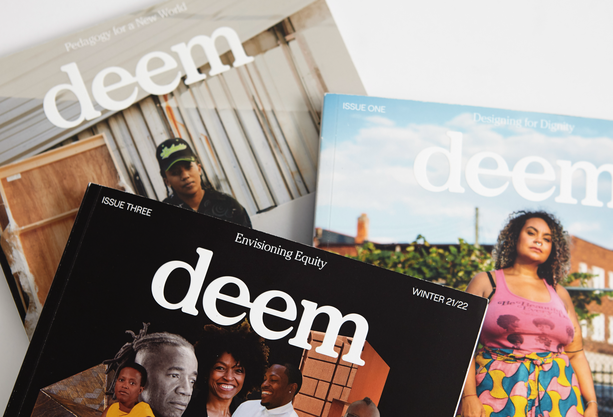 Deem Journal is our annual print publication. Our editorial approach highlights a multitude of voices, beyond traditional industry gatekeepers, to engage in dialogue about design futures. Our community of contributors and readers spans a range of identities, disciplines, geographies, and generations.