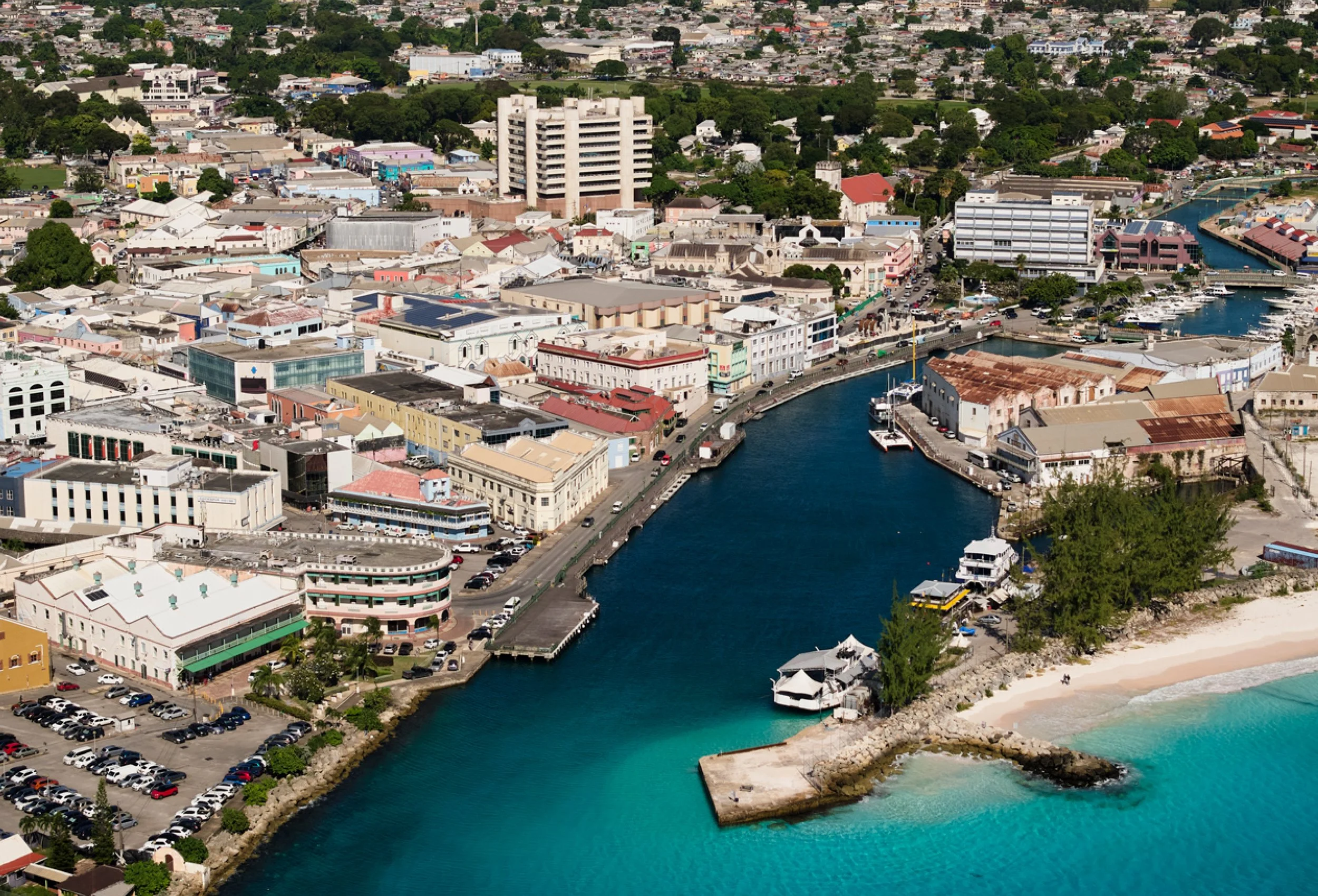 Aerial view of the mouth of the Constitution River/Bridgetown Wharf.