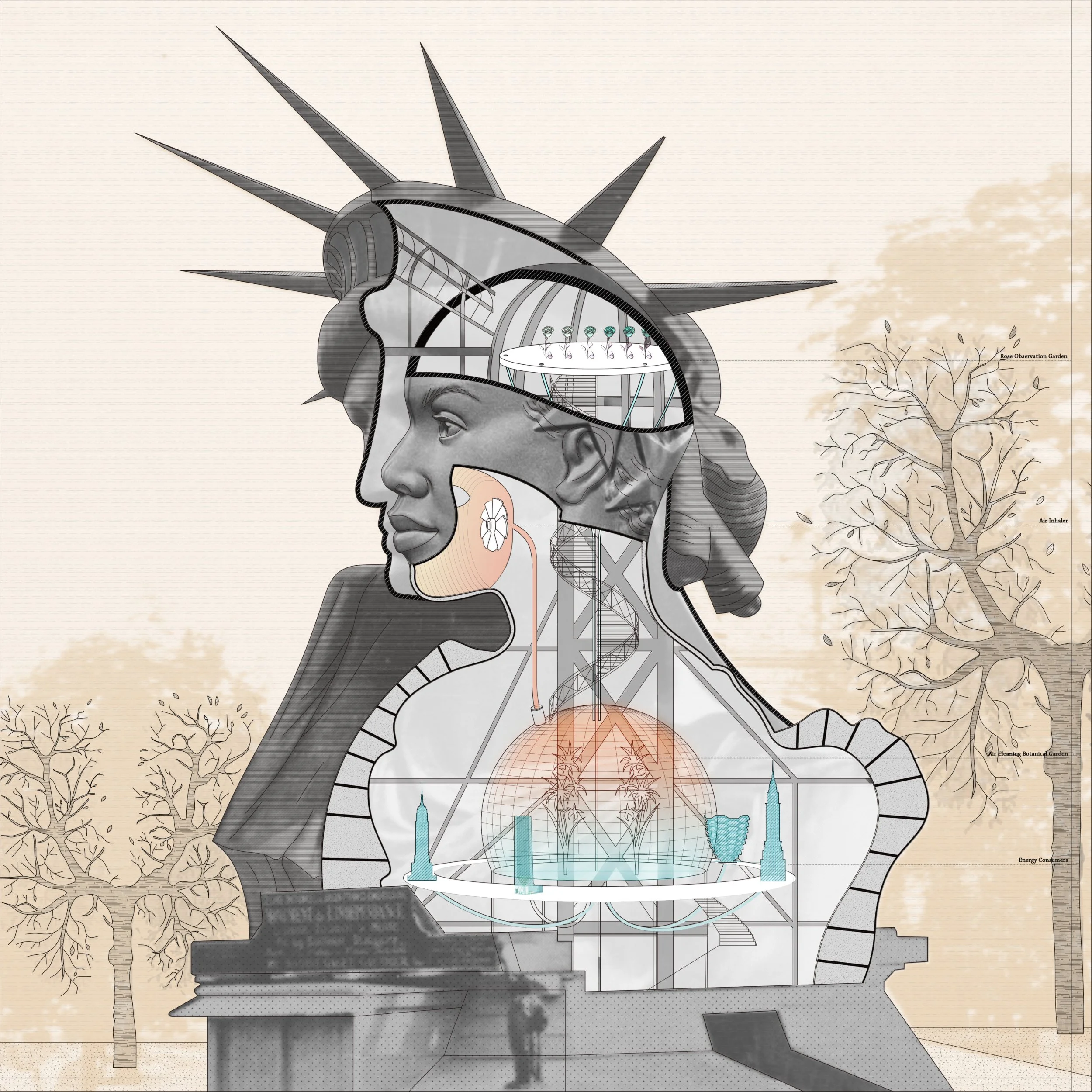 Illustration from “Statue of Liberty” in Climate Inheritance, 2023. Courtesy of the authors.