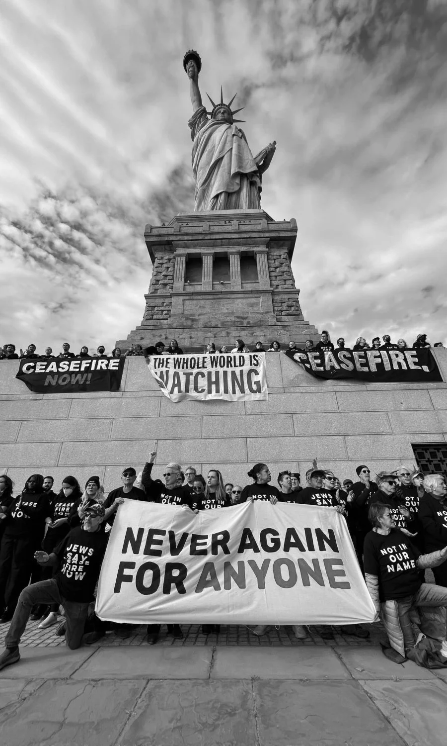 I agree that there is great value and intelligence in moments like, as you mentioned, Jewish Voice for Peace specifically choosing the Statue of Liberty as a site for protest. It’s a way of infiltrating a site that has an already established cultural value and aura surrounding it. Because of that brief moment, the protest will forever become part of the site’s history and narrative.